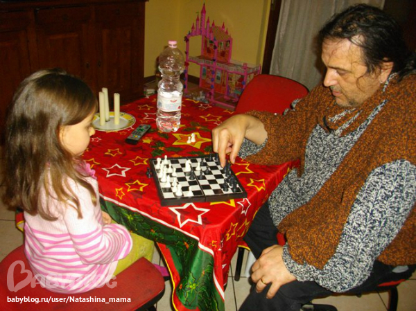 У нас все запущенно, поскольку нам приносит подарки не только Дед Мороз, но и Санта Клаус)))) Поэтому Санта принес нам Ciccio Bello ha la bua - такого пупса большого, сантиметров 50, который плачет, у него поднимается температура, и только укольчик может помочь емы выздороветь))))) Наташа очень довольна))) Kроме этого, щедрый Санта принес нам кукольный домик сказочных фей типа Трилли, в котором загорается свет и все такое, и самое главное - ШАХМАТЫ!!! По секреты скажу - шахматы затмили все подарки! Наташа за один день выучила все ходы и теперь они с Реем играют в шахматы целыми днями! Это супер, мне это очень нравится! Ну, а Дед Мороз тоже решил не отставать от своего иностранного собрата, и принес электронную игру Хелло Китти, диск с мультиком "Золушка" (Таша загадала его), а также маленький кексик пандоро с сюрпризом внyтри. Все были очень довольны)))) Рейчику достался совместный подарок от Деда Мороза и Санта Клауса - таблет тач скрин, чтоб он у меня мог выходить спокойно в интернет, когда находится вне дома, а меня ждали очень красивые серьги))))) Все было супер, на Рождество мы ели обалденную лазанью, приготовленую моим мужем, а на Новый год пошли к нашим друзьям и шикарно повеселились!