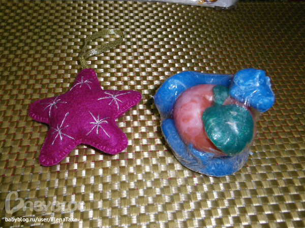Звездочка тоже такая здоровская, уже на елочке, Наташ, ну так все аккуратно, тоже теперь хочу фетр попробовать. И мылко, мужу отдала, ну жалко прямо мылиться таким.