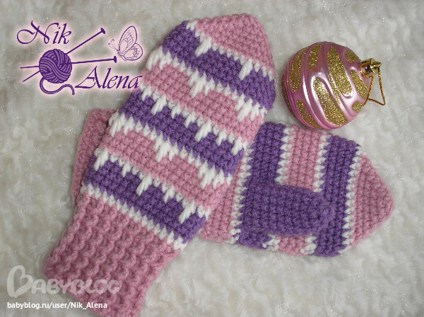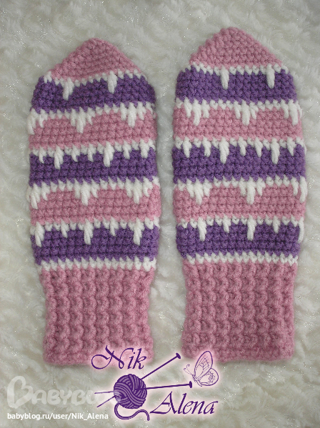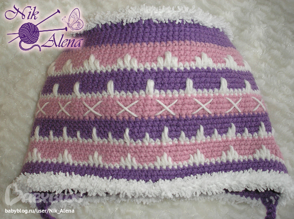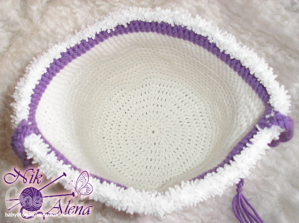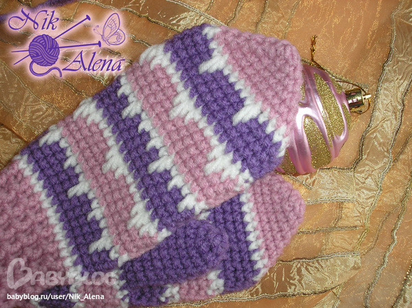 Пряжа ALIZE LANAGOLD, 100г/240м, 49% - шерсть, 51%-акрил. Цвета Розовая - 98, Сирень - 424, белая - 55, обвязка сделана белой пряжей КРОХА НАЗАР Рус, крючок №3,5.