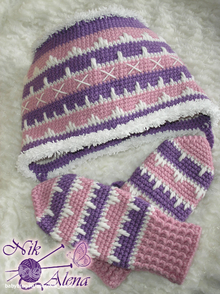 Зимний комплект шапочка и варежки "Ежевично-черничный микс"