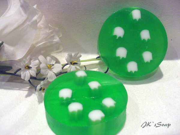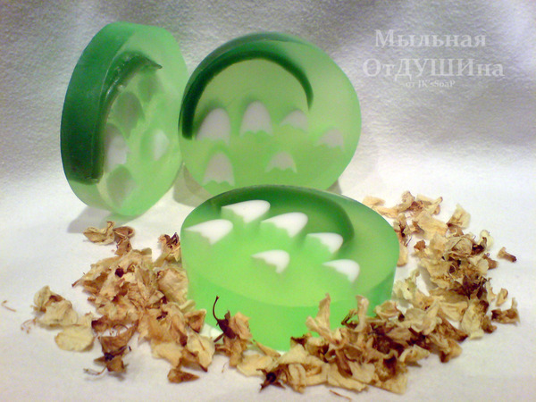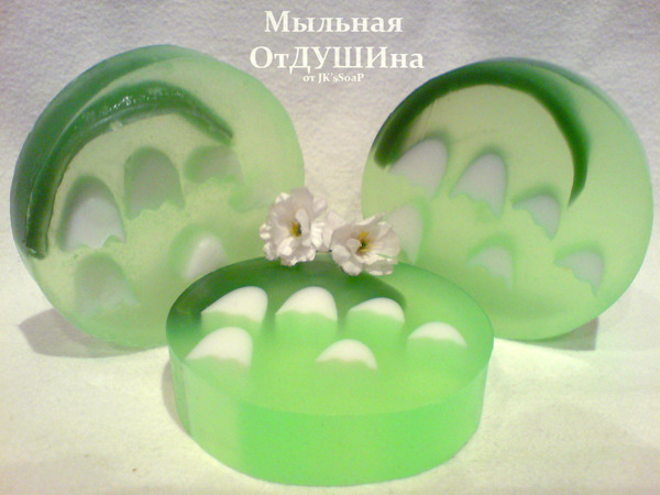 Наташ, опять врываюсь, самый легкий способ (ландыши делала раньше, не могу ща фотку найти); есть форма для льда- палочки с готовым для низа ландышей дном, режешь по длине, смотря какой толщины будет мыло. Не поленилась, сфоткала.