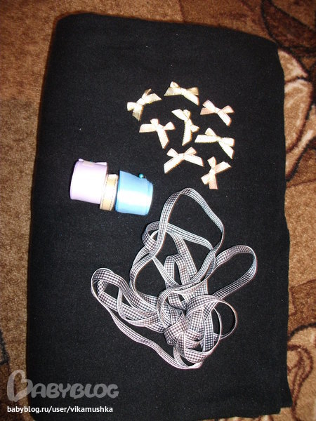 А это большой кусок черного флиса для моих шапочек,ленточки и бантики.Только цвет я так и не смогла передать......