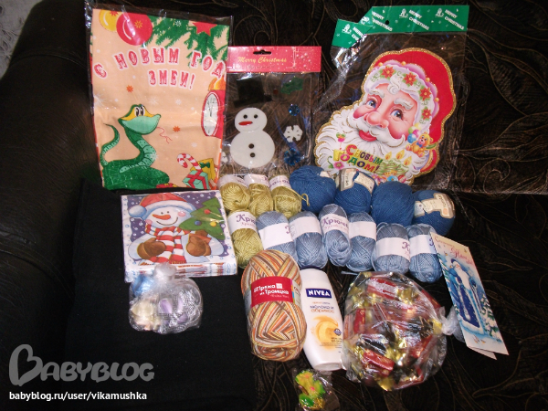 Вот этот Дедушка Мороз нам передал столько подарочков и много теплых слов от Нины и ее семьи)))Спасибо большое!!!!!!!