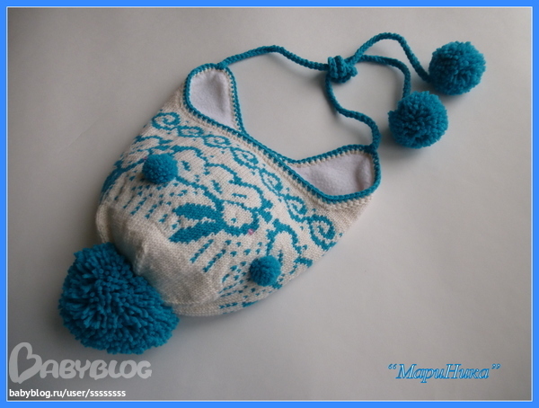 Шапочка выполнена в технике ручного жаккарда, без швов на чулочных спицах, утеплена флисом.