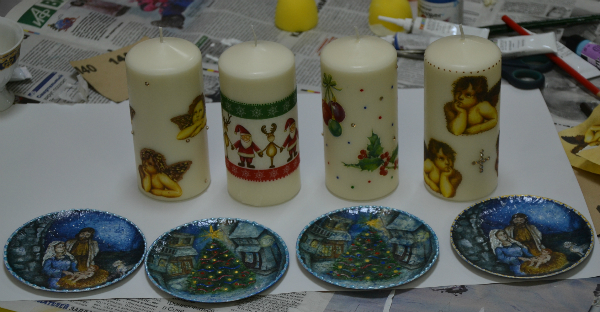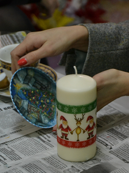 ДекупажЧтобы не было скучно во время праздников-решили устроить рождественские подарки! 4 и 5 января провели МК. Получили море позитива, прекрасное настроение и рождественские свечи и подсвечники. Подсвечники во время работы у некоторых плавно превратились в декоративные тарелки и магнитики на холодильник-одним словом-ВОЛШЕБСТВО!!