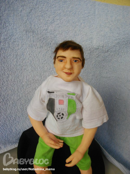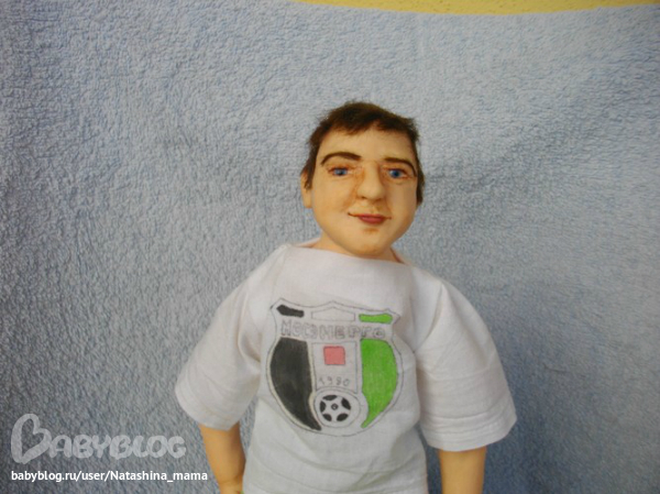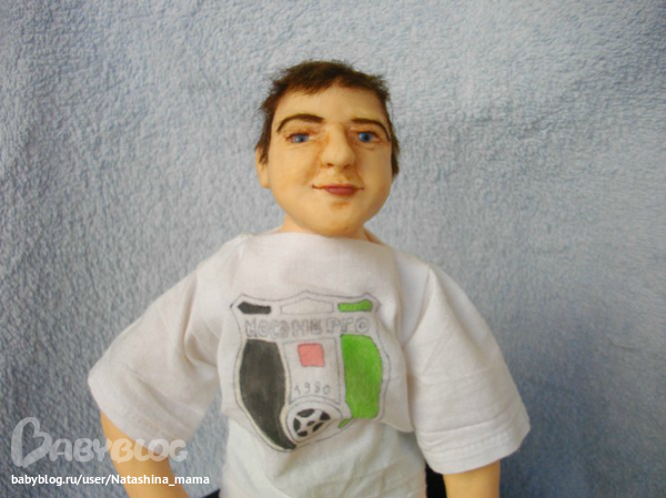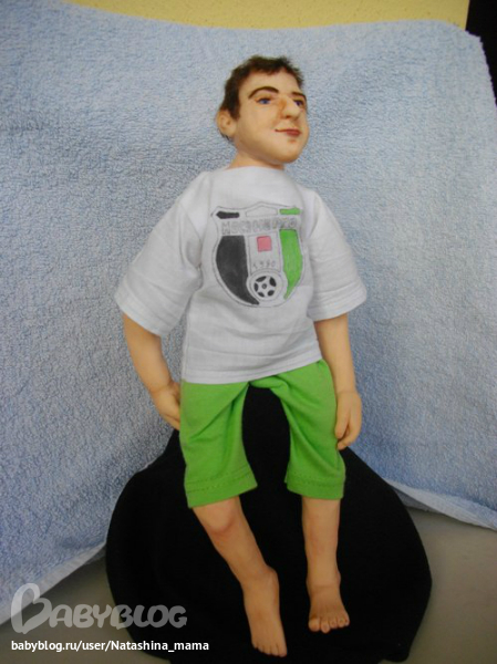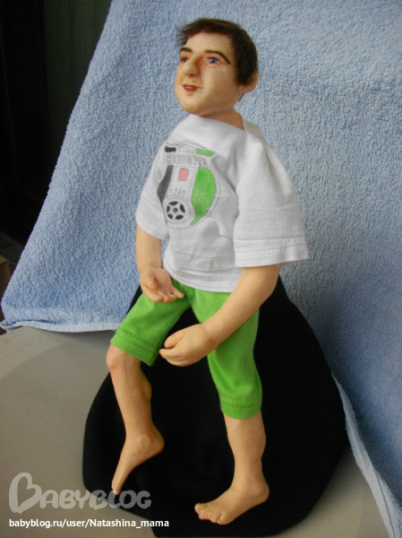 Футболист - портретная каркасная кукла, рост 32 см, руки и ноги подвижные, слеплен из Фимо Паппен, глазки стеклянные Лауша (Юленька!!! Люблю тебя!!!) Слеплен на заказ. Уезжает в понедельник в Мытищи))) Ленуся, надеюсь, будешь его любить больше, чем мужа)))) Шучу!))))