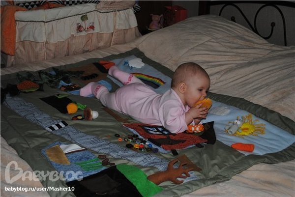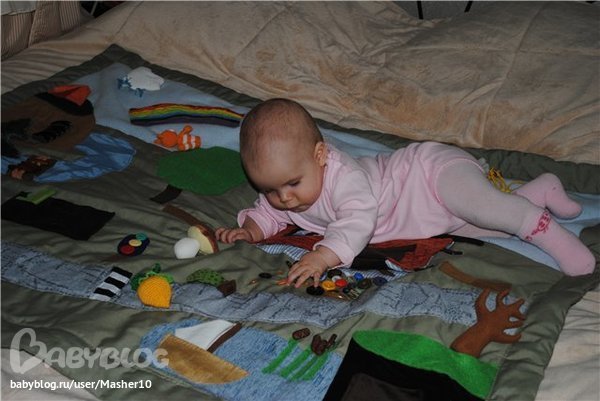 Игрушечный мир - животныеКогда мы еще только ждали рождения старшей внучки Сони, я прошерстила все инет-магазины игрушек и пришла к выводу, что при всем многообразии развивающих игрушек того коврика, что я хочу, в природе не существует. Пришлось ваять самим. В результате появилось игровое полотно 100х140 см.