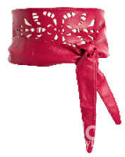 ВАМ ПОНАДОБИТСЯ: готовый широкий завязывающийся кожаный пояс, школьный мел, прозрачная бумага, маленькие ножницы с острыми кончиками, дырокол, текстильный клей.