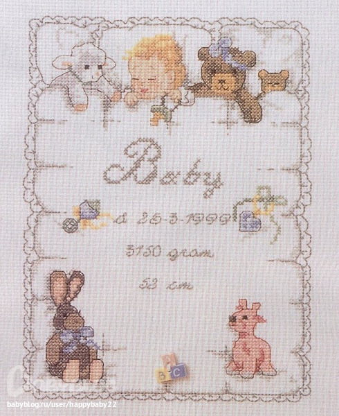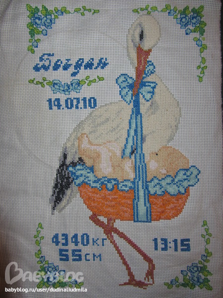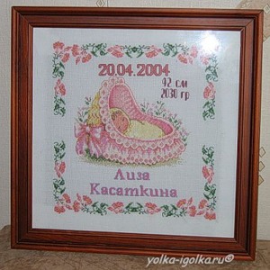 Вот такая метрика вышита для сына, правда не идеально, это моя первая вышивка. А для дочи охото чего-то более нежного, красочного.