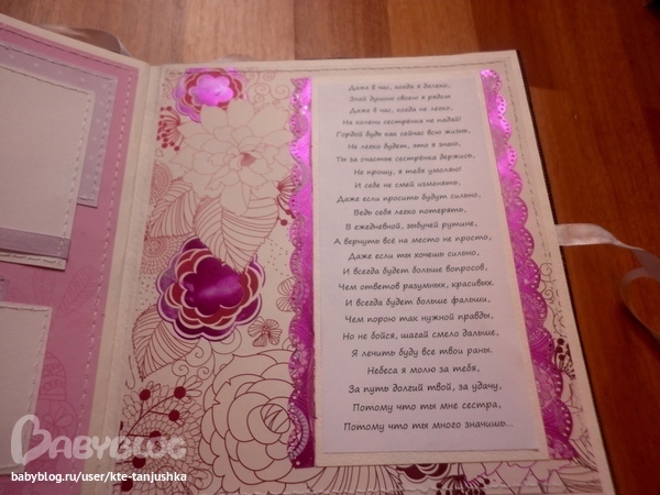 Ну а на последней страничке я решила разместить стишок, который очень точно отражает то что я испытываю по отношению к сестре