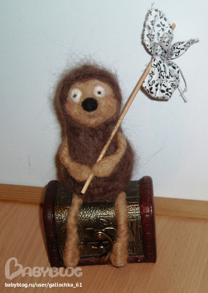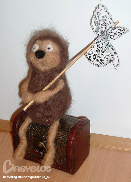 Игрушечный мир - животныеЗахотелось свалять ежика из мультика" Ежик в тумане"Правда серой шерсти дома не оказалось,поэтому он-коричневый!!!!Игрушку валяла впервые,раньше валяла только валенки.Не судите строго мой эксперимент.