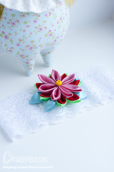 Первые мои цветы в технике канзаши.попробовала сделать повязку на голову