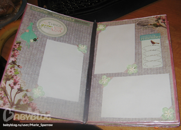 СкрапбукингДелаю альбом. Пока полностью готовы вот такие развороты. (Фото отвратного качества, к сожалению я только после переноса фоток в комп заметила, что объектив был замацан моим любимым чадом! Ну, в общих чертах всё видно).