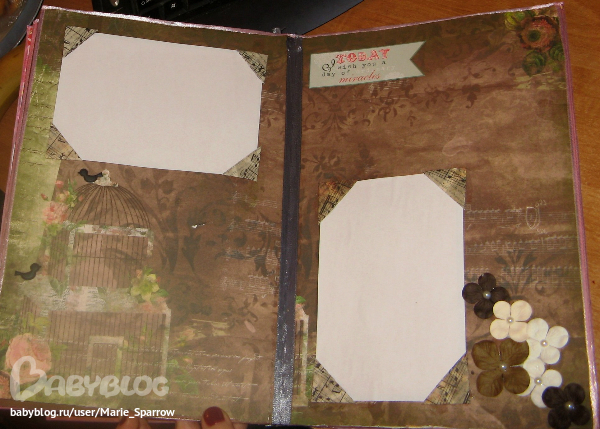 1-й разворот тоже нормальный, вот только цветочки я бы убрала с уголков.