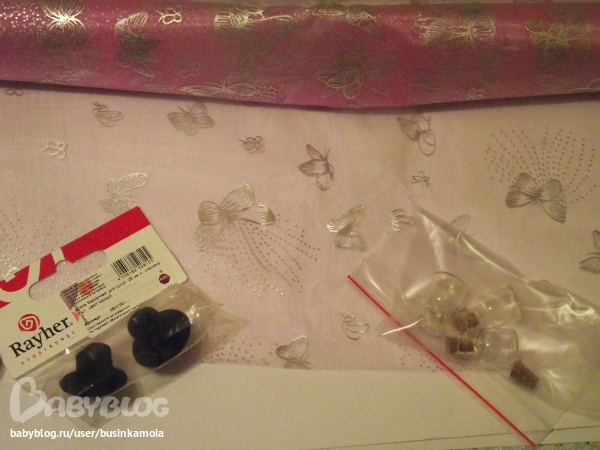 красивучая органза с бабочками, стеклянные бутылочки и маленькие цилиндры))