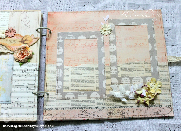 СкрапбукингЭтот альбом должен был получиться нежным, светлым, пожеланием заказчицы было использование светлых, персиковых тоно в и большого количества цветов. Надеюсь, все получилось)) Размер 26 на 28, рассчитан на примерно 40 фотографий 10 на 15 см.