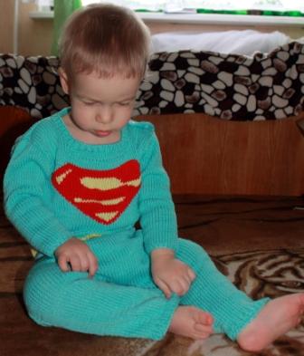 Связала сыну костюм Супермена. Пердыстория у него долгая, точнее не долгая, а давнишняя) Совсем маленьким сынуля спал подняв одну руку вверх, как Супермен, вот тогда с мужем и решили, что надо что-нибудь суперменское связать сыну. Не прошло и года, как оно готово!))