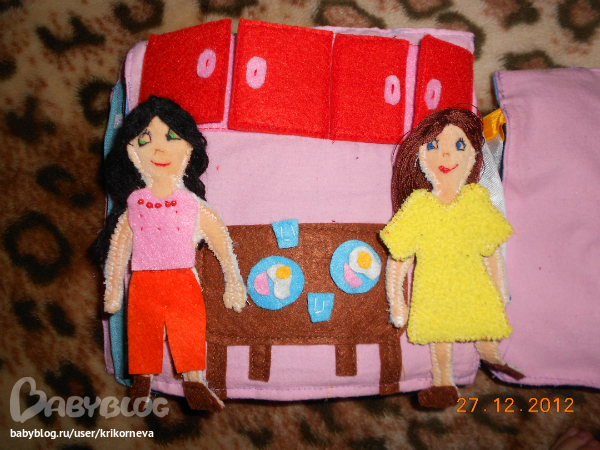 книга сделалась еще до Нг в подарок , но не было времени выложить! я давно хотела сделать такую книжку, т. к. вспомнила свое детство и бумажных куколок и то как делали им домики в худож=х книгах)))) вот по тому же принципу и сшила)))