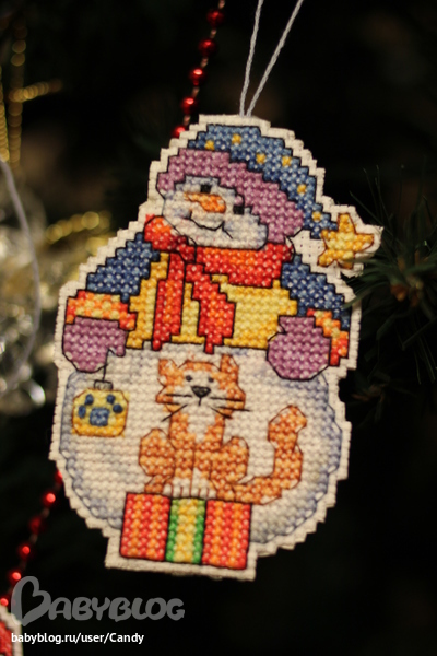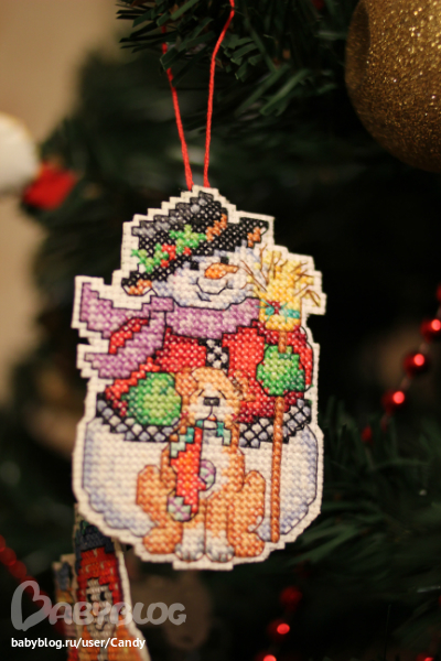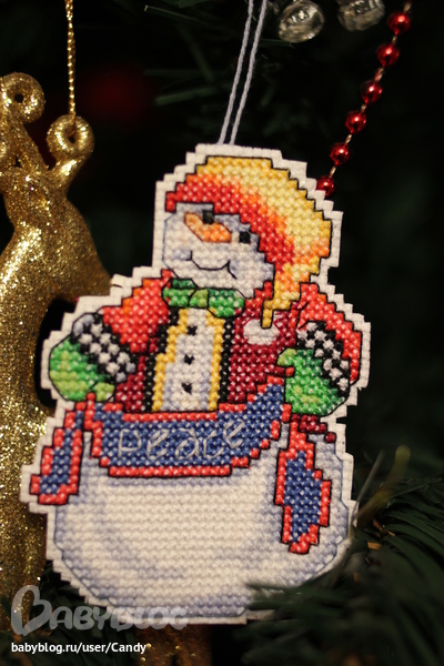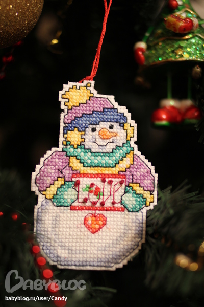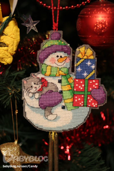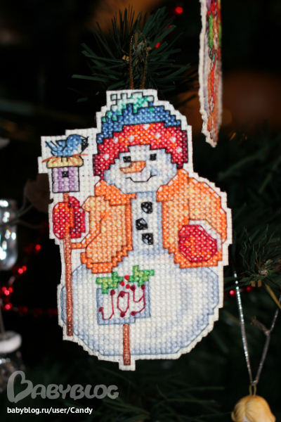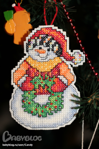 Вообще я вышивала еще вот такого снеговика, но не доделала... Очень тяжело идет, там много крестиков таких дурацких...3/4 Но к следующему НГ обещаю "добить". Чего добро пропадать будет, тем более, что начала :)