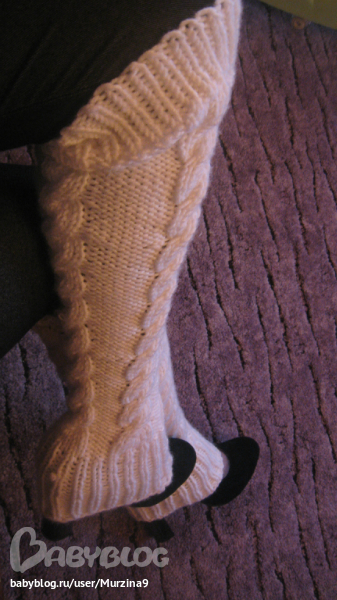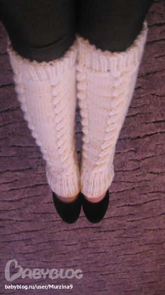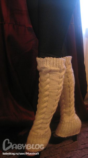 Правда получились туговаты, и на сапоги надо натягивать, фото под туфельки, на последней чуть приспустила. а так сидят прочно, не сползают)))) Хомяк рад)