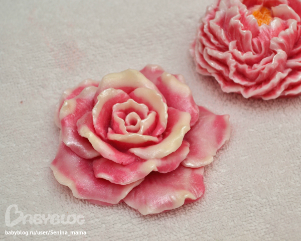 розочку заливала мраморной заливкой. только сначала форму ополоснула не белой основой, а розовой:)