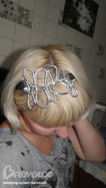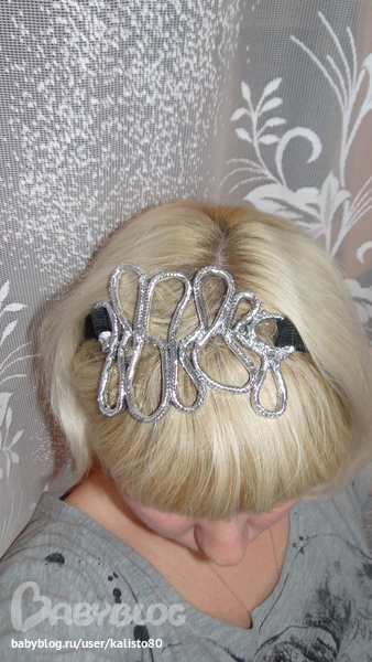 тут мелко конечно,но видно как красиво на головке смотрится) сделано это из цепочки и захотелось мне такое....СДЕЛАТЬ))),но так как я профан в таких украшениях,решила симпровизыровать)))) купила декоративный шнур и за час сделала вот такое Чудо))), это пока опытный образец, но сам процесс делания такого украшения понятен))))