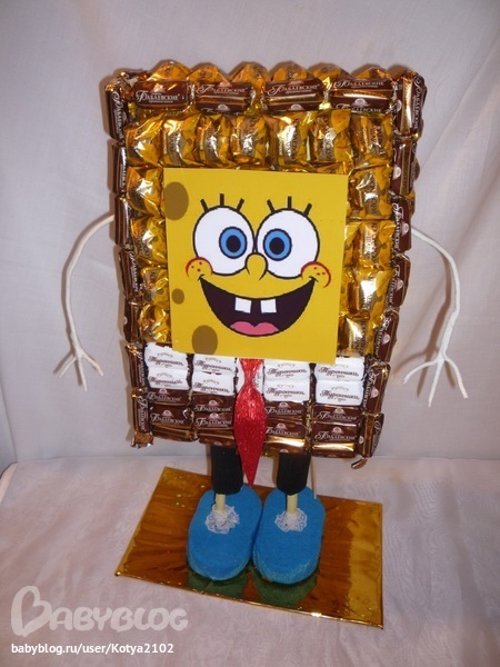Мама Котя в Рукоделие 13 лет Губка Боб из конфет Вот такого конфетного мультяшного героя Губку Боба получила 10-летняя девочка на День Рождение. Радости и восторга не было предела. А в принципе сделать его можно довольно быстро. Как это сделать можно посмотреть здесь. Посмотрите еще 20 записей на эту тему Отменить Ответить Ольга прикольно! 11.01.2013 Ответить Феюшки с весною в сени к нам летят. цветочки в шляпке Чаты Беременных Выберите чат: Январята-2026 Февралята-2026 Мартята-2026 Апрелята-2026 Майчата-2026 Июнята-2026 Июлята-2026 Августята-2026