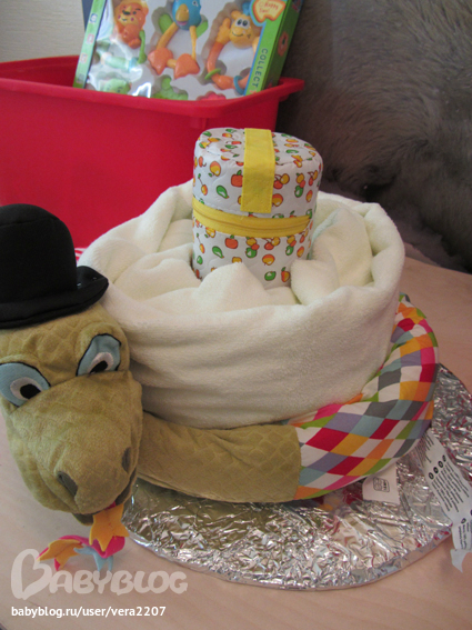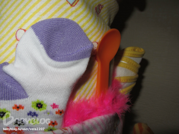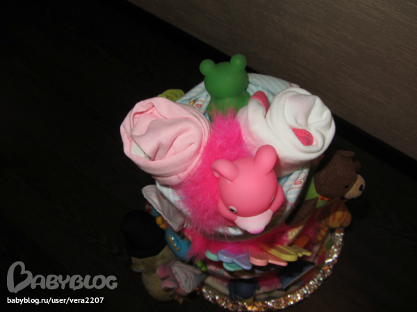 Для тортика я использовала: игрушки, погремушки, ложечки и другое.