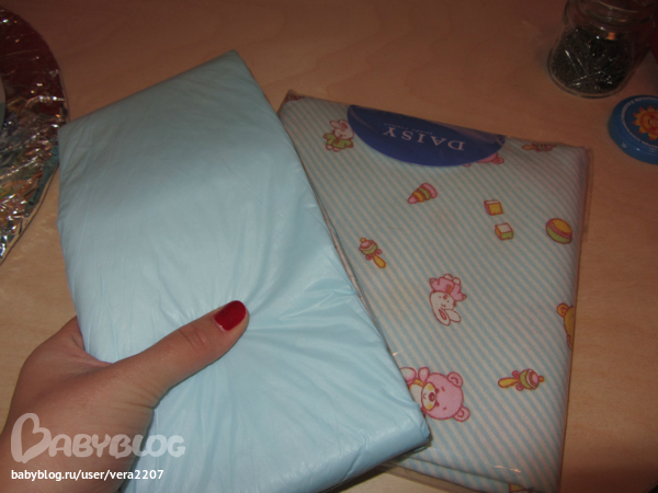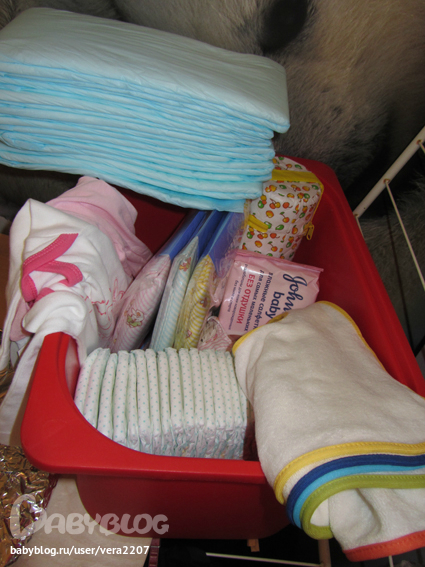 А так же памперсы, одноразовые пеленки, носочки, рукавички, слюнявчики, пеленки, полотенце и другое.