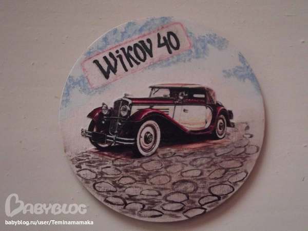 А это моё произведение! Янина выслала и заготовочку и декупажные карты с ретро машинками, мой Тема очень их оценил, еле отобрала, тогда решила сделать ему подставку под кружечку, он зовет "Мой кружочек".