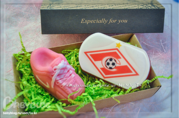 Кроссовочки какие хорошенькие, и наборчики очень понравились! Зеленая травка под мылками на футбольную тему - супер!
