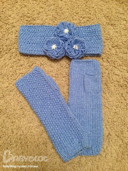 Повязка и митенки для сестренки