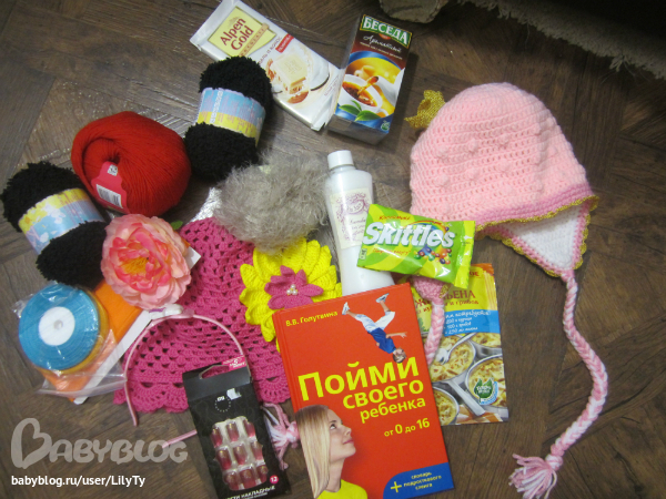 шоколадка была безжалостно слопана. за жульен отдельное спасибо, у нас его не найти, а мы его очень любим. Книжку будем изучать, как раз вовремя. Лосьончик пахнет обалденно!!!
