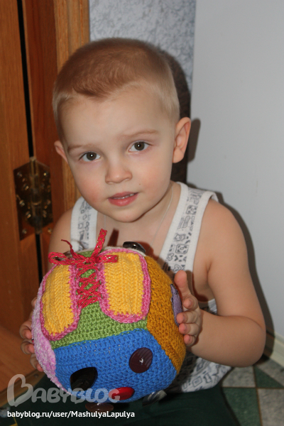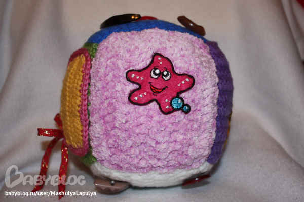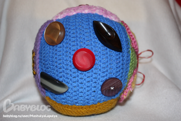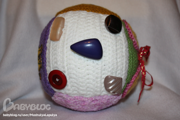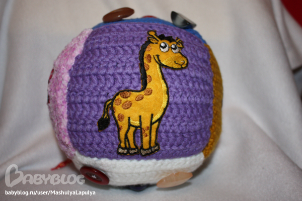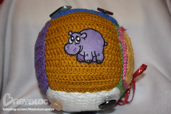 Игрушечный мир - животныеНасмотрелась на развивающие кубики и захотелось такой реализовать. Не стала искать поролон, набила синтепоном и получился развивающий мяч. Вот оно мое творение)