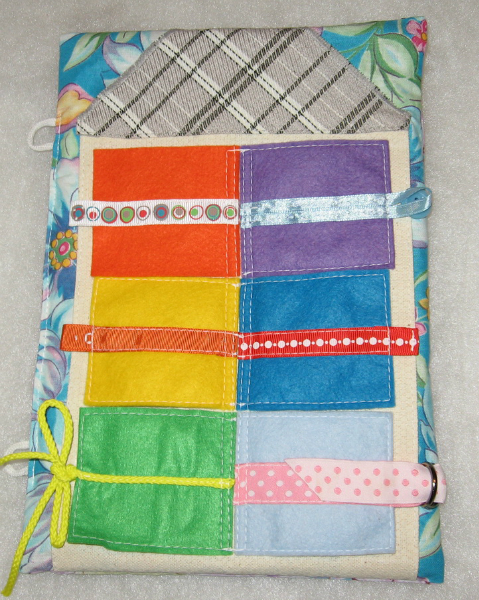 Домик с 6-ю дверьми на разных запорах-застежках - кнопка, крючок, шнурок, петля-пуговка, липучка, лента+2 полукольца.