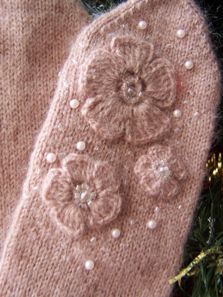 Связала вот такие варежки из Реал 40. Долго лежали-не могла придумать как украсить. Созрела))) Получилось вот что