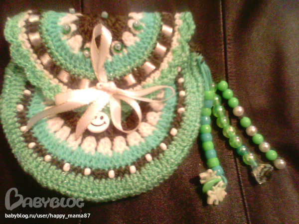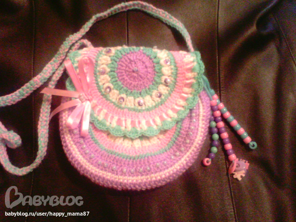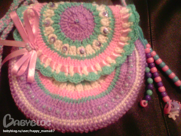 спасибочки. вязала без схем, но вот тут видела девочки онлайн вязали, посмотрите, а вот ссылка на мастер класс. на самом деле вяжется очень просто - один целенький круг, желаемого размера - это крышка, и два недовязаных сверху - это половинки (или один довязаный, второй - нет), детали сшиваются или связываются, пришивается крышка, украшательства и все! сумочка готова! думаю, Вы разберетесь)