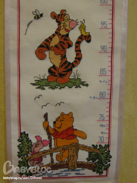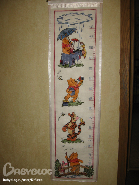 ПРиветик!!!!!!!!!! Спасибо тебе!!!!!!!!!! Да вышила я его в целом за 3 месяца, могла бы быстрее, но не получается каждый день посидеть,а доче безумно нравится она постоянно с ним играет, хотя мериться не хочет у него, ну кто в гости не приходит, сразу бежит к ростомеру показывает его))))))) Вы как малыши?????