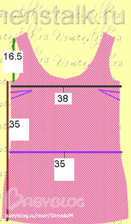 такой же выкройки в виде картинки не нашла, поэтому взяла за образец выкройку похожей майки только с двумя лямками, но для демонстрации размеров это не принципиально: