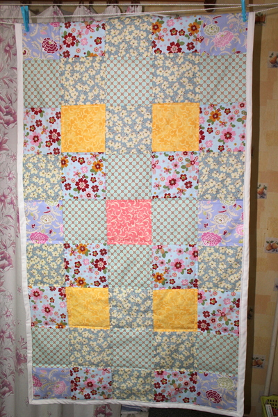 Ткань вся хлопок. Чтобы не съехало - все надо отглаживать и скалывать иголками, желательно прямо где швы между квадратами.