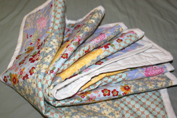 Да, я сначала сшиваю длинные полосы (в этом случае их 5) из квадратов, потом эти полосы между собой. Потом складываю "бутербродом" верх, синтепон и низ и все простегиваю.