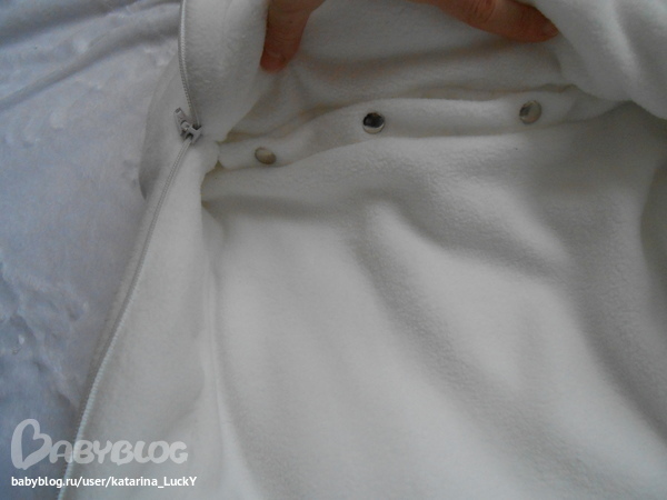 Внутренний кокон фиксируется на кнопках к подкладу основного. Кнопочки расположены таким образом, чтобы не создавать мостики холода для малыша: