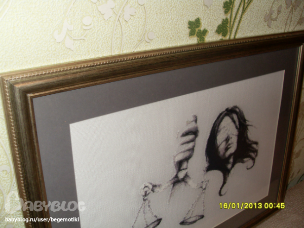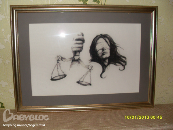 Вышивка - потрясающая, а вот рамочку я бы более лаконичную, без блеска и рельефа выбрала - гладкую, чтобы она не перетягивала на себя внимания. (это чисто моё мнение, но здесь этот вариант нужно смотреть в целом, в интерьере)