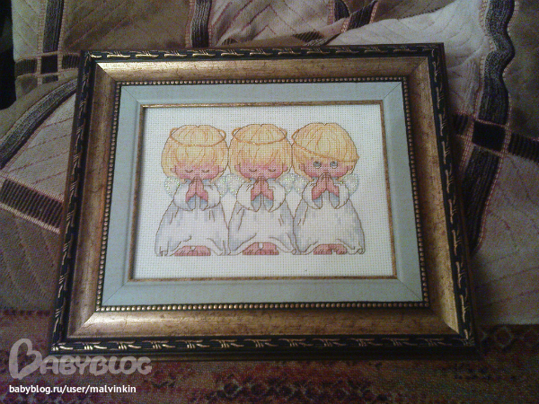 Стоит ли говорить, что крючок и нетронутая пряжа до сих пор лежат в закромах хомячьей норки)) а вот вышивка меня увлекла, причем так, что я поняла, что это действительно мое!! Когда я забеременела, то думала, что уж в декрете вышью самую большую свою картинку))) ага, щазз, сына меня не подпускал к вышивке, подташнивая при этом)) не мужское это дело, знаете ли)) а вот к вязанию ему пинеток, костюмчиков относился нормально (конечно, для него же вязала). Таким образом, метрику для него я дошила только после его рождения, и то месяца через три)) все боялась, что опять будет чувство отвращения. Кстати, пошел на ура бисер, когда сына был еще совсем малютка.