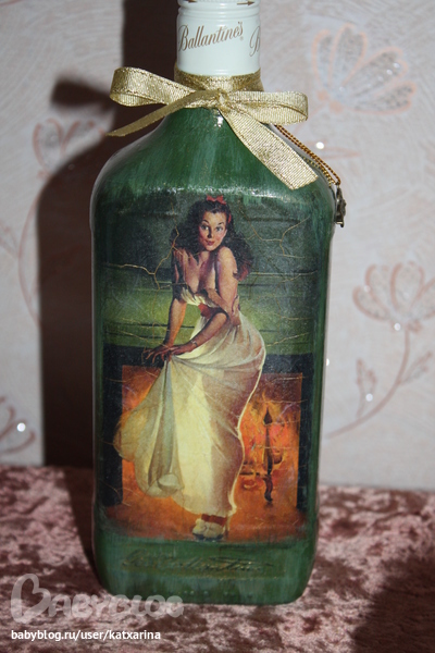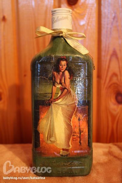 Здоровские!!! Очень мне понравились декупажечки! Сделаны очень аккуратно и с любовью. Я раньше и не подумала бы что так можно подать бутылоску виски))) Возьму себе на заметочку ;)