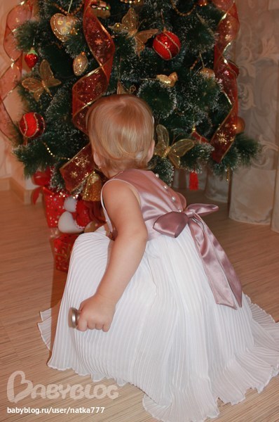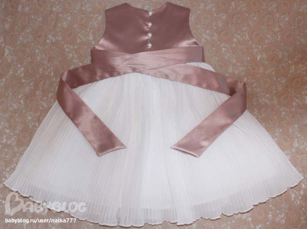 Вообщем-то сначала не собиралась ни шить, ни покупать платье, но неожиданно решили пойти на утренник, а дотянула до последнего. В магазинах понравилось несколько платьев, но цена - 3500 за платье на один раз мне показалась неоправданной. Пробежалась по магазинам тканей, и единственное на чем остановилась - это плиссированный шифон, купила его 1 м, все остальное для пошива платья нашлось дома. Подклад из хлопка, для верха - тоненький поплин, а вот для нижней юбки пригодился отрез очень плотной ткани для постельного белья, который хорошо держит форму. К нижней юбке пришита оборка из жесткого фатина. Пояс пришит только по боковым швам. Украшено жемчужными стразами, застегивается на жемчужные пуговички. Розочки на повязке из того же сатина и шифона, что и на платье. Шифона осталось еще на одно платье, его я покажу чуть позже.