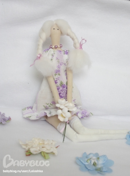 Вот такая маленькая милая девочка у меня получилась. В обще с ней произошла интересная история.Когда я решила её сшить,то у меня остался небольшой кусочек ткани для тела,но в процессе я понимаю,что сын,помогая маме,выбросил её руку в мусор,но что-то меня остановило и я не стала её ликвидировать......и тут спустя почти 2 месяца я случайным образом нахожу малюсенький кусочек нужной ткани и я поняла,что этой девочке БЫТЬ!