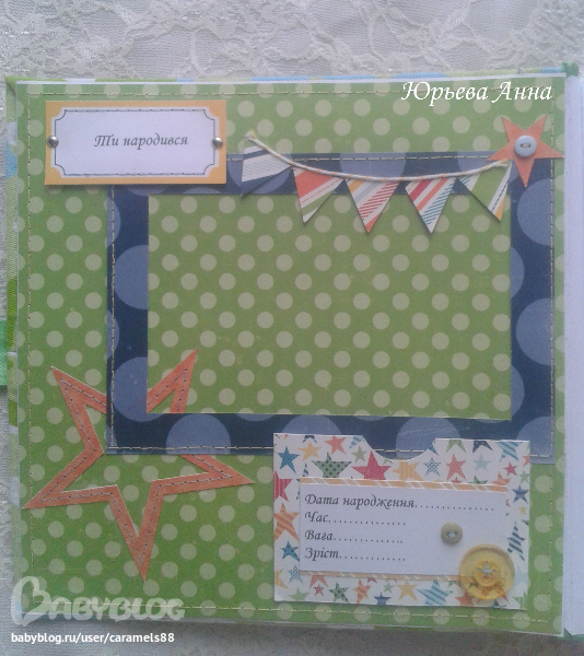 СкрапбукингПоказываю вам мой первый в этом году альбом. Альбом делала на заказ, для мальчика Ильи, на второй год жизни. Пожелание заказчицы было минимуму голубого цвета, без символических надписей я кушаю, сплю... но что бы каждая страница была со смыслом, приветствовались нестандартные надписи, и опять таки что бы все они были на украинском языке.