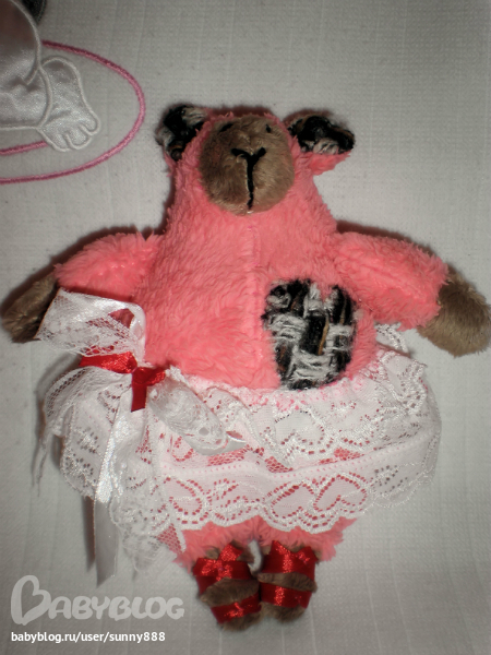 Решила я сшить сестре мужа подарок на 20-летие....Задумалась вот такая розовая барашка....в пуантах и юбочке.... Пахнет эфирным маслом с запахом клубники....Но когда Марта была готова, я просто не смогла с ней растаться.... шилась родственнице, а в итоге получилась для себя))))