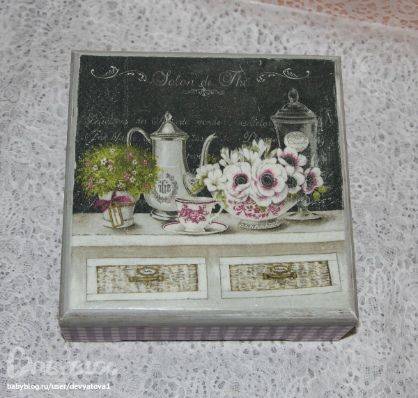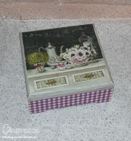 ирина в Рукоделие 13 лет Чайная шкатулка "Приятного чаепития" Декупаж Есть еще фото под катом Посмотрите еще 20 записей на эту тему Отменить Ответить Аннет))Декупаж на заказ)) Люблю эту салфетку)))) очень здорово)) 23.01.2013 Ответить ирина Спасибо Аннет)) 23.01.2013 Ответить Аннушка очень -очень понравился верх крышечки..чудесный)) 21.01.2013 Ответить ирина Аннушка, спасибо большое!) 21.01.2013 Ответить Шкатулка "Coffee time" Шкатулка "Гортензия" Чаты Беременных Выберите чат: Январята-2026 Февралята-2026 Мартята-2026 Апрелята-2026 Майчата-2026 Июнята-2026 Июлята-2026 Августята-2026